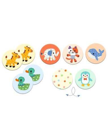 Memo Doudous is an image association and memory game on the emotional and everyday theme for children: the cuddly toy. A first memorization game. Develops the sense of observation and memory. Thick cardboard pieces, easy to grab. A theme in the affect, close to the child: the comforter A box in the shape of a cube, ready to offer and easy to transport with its cord