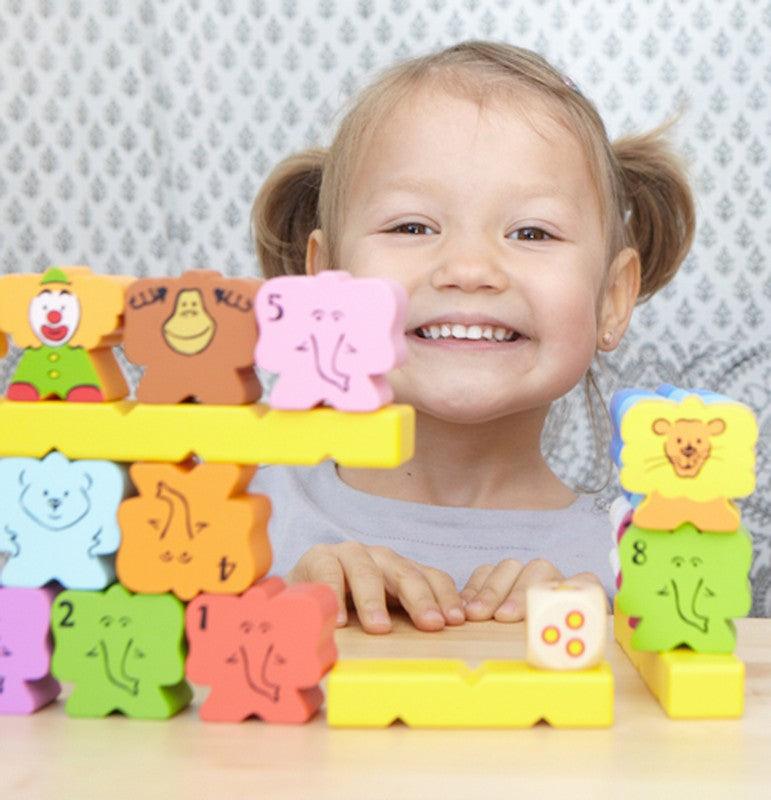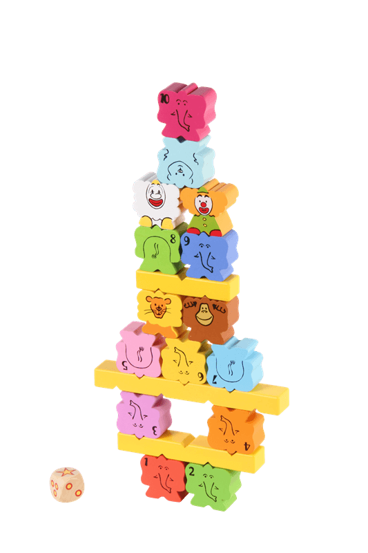 Take it in turns to roll the die to see how many elephants you need to stack on the pyramid. The player who manages to place the last elephant on the pyramid wins.