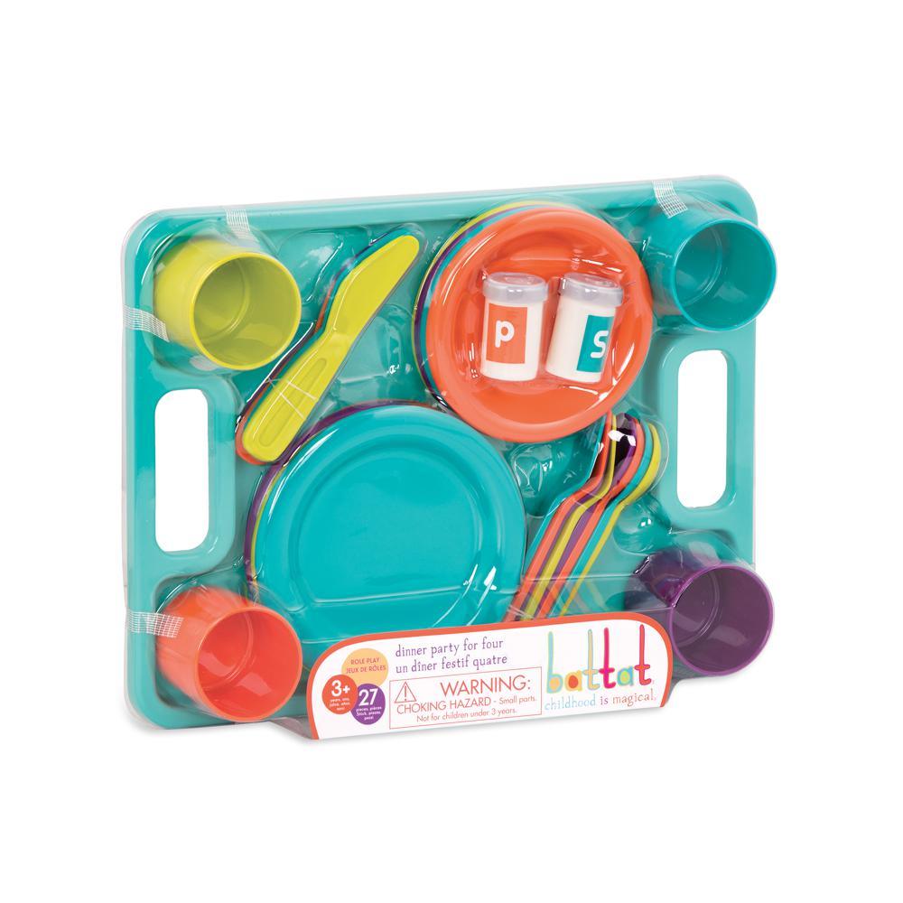 - Includes: 8 plates, 12 pieces of cutlery, 1 tray, 4 glasses, 1 salt shaker, 1 pepper shaker