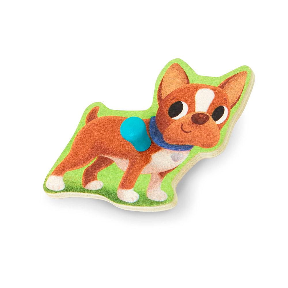wooden puzzle on the theme of the farm and its animals ''Peek & Explore''. Learn to recognize different elements of a farm by trying to place each of them on the board.