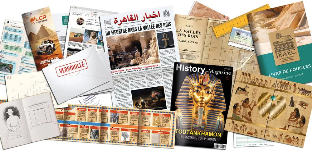 ESCAPE GAME MECHANICS: Solve puzzles to unlock 4 envelopes containing additional evidence.