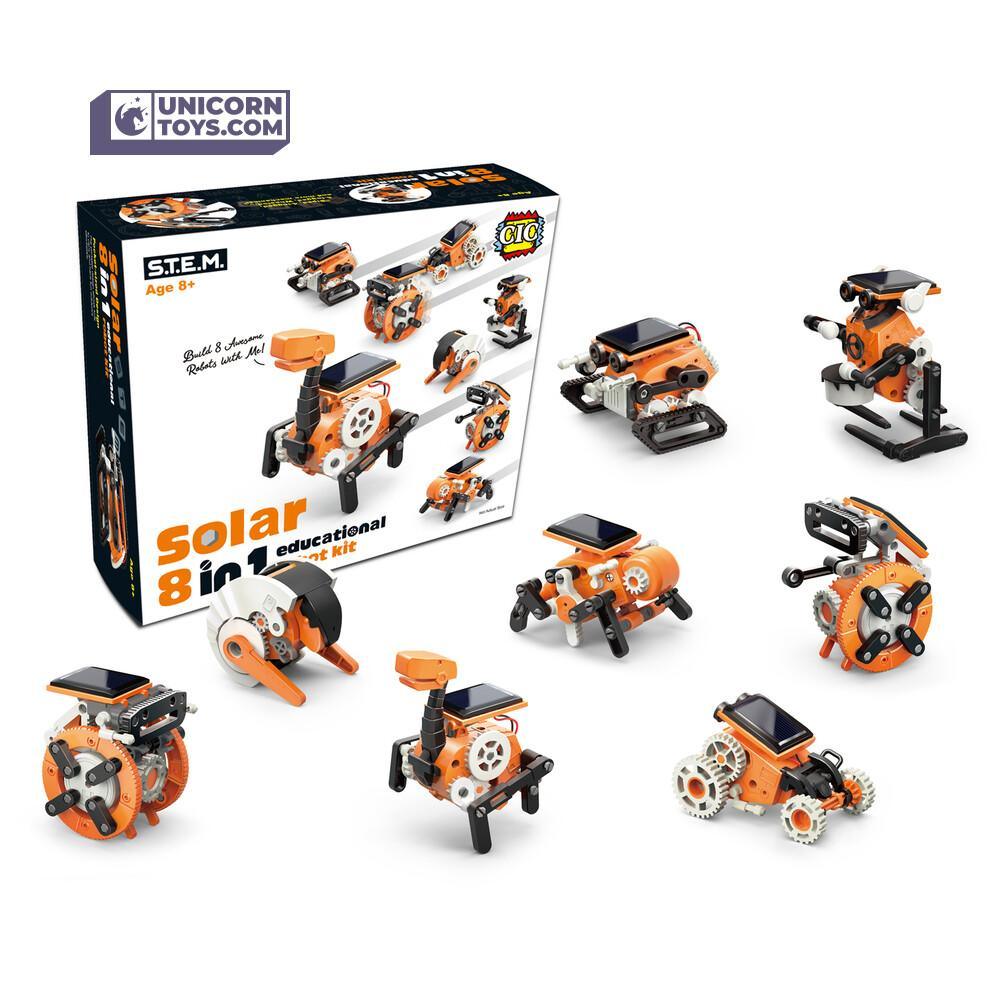 Spark your child's interest in science, engineering, technology and ecology with the 8 in 1 Solar Educational Robot Kit. This STEM educational kit is perfect for at-home play and outdoor experiments. The 8 in 1 Solar Educational Robot Kit will help your child discover and explore the limitless possibilities of solar energy while developing basic engineering skills.
