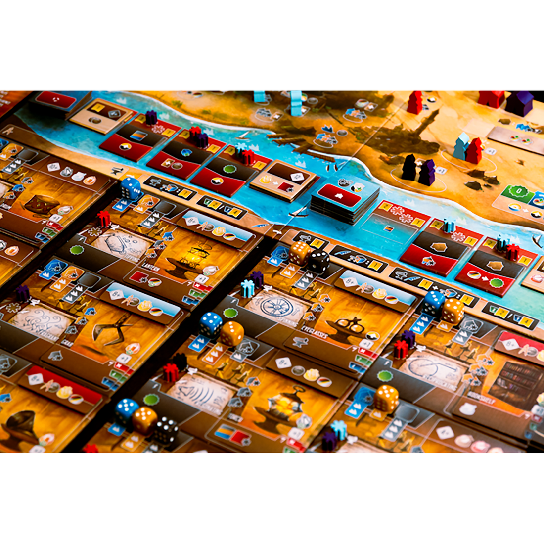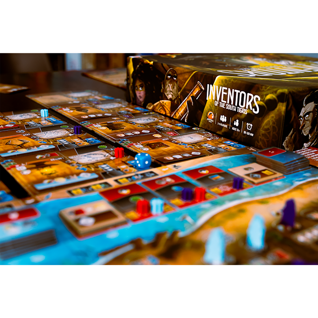 Inventeurs du Tigre du Sud takes place at the height of the Abbasid caliphate, around 850 AD. In recent decades, Baghdad has become home to thousands of mathematicians, astronomers, chemists and physicians. As inspired innovators, players are eager to develop contraptions and inventions to impress their peers. Will your ingenious devices grace the House of Wisdom, or are they destined for dust and oblivion?