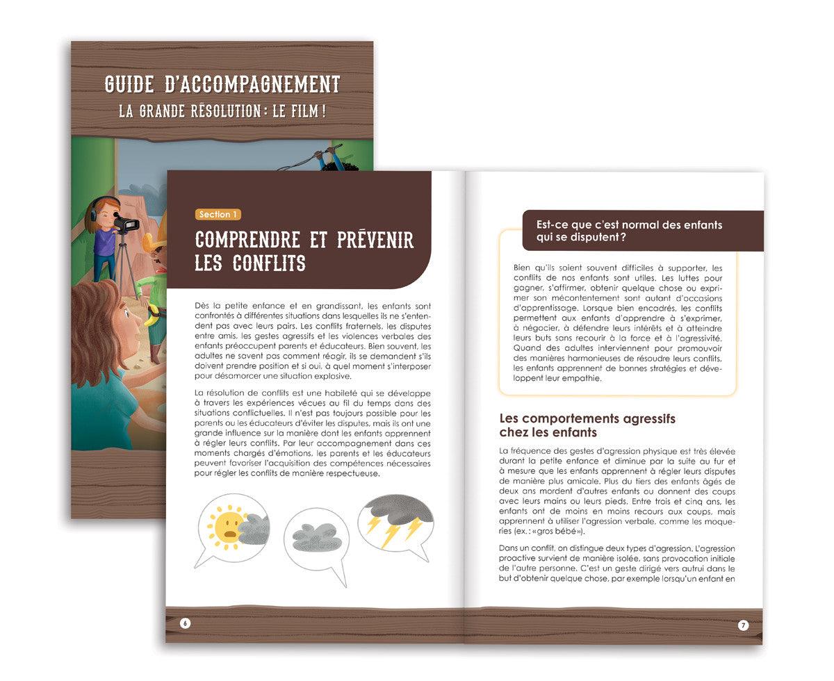 La grande résolution : le film! is a tool designed to help children aged 5 to 9 (and their parents!) develop conflict resolution skills. It includes materials for resolving conflicts using a specific approach, as well as materials to help resolve them. The materials and approach are presented in detail in an accompanying guide for parents. It also suggests a host of strategies for preventing and managing conflict on a daily basis.