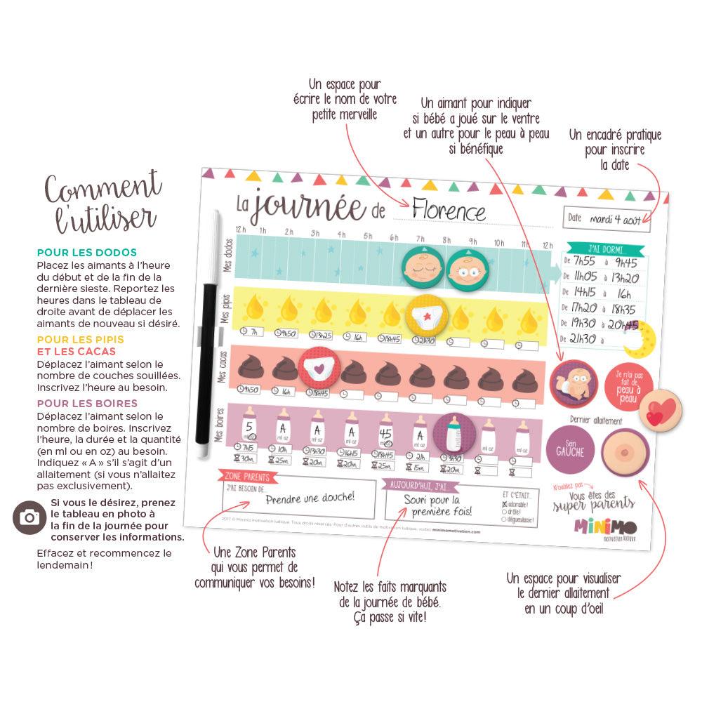 Coming home with a newborn is an exhilarating but unsettling experience for every parent. Between the lack of sleep and the disrupted routine, it's often difficult to memorize everything. The monitoring schedule baby's day allows you to quickly take note of all the important little things about your child's day. Never forget again what time the last feed or nap was! The perfect tool for a smooth new family life!