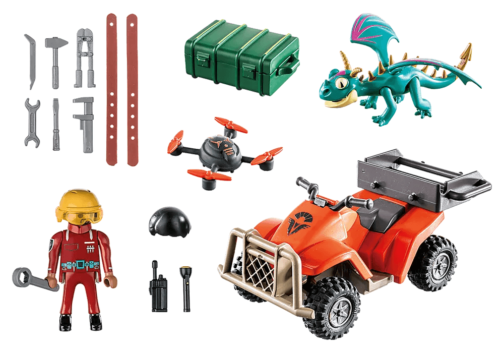 Contains D'Angelo's father Phil and a dragon. The quad has storage space and a retro-friction motor.