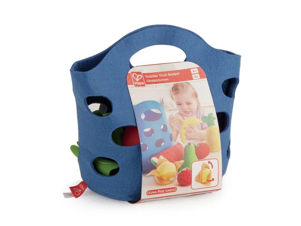 Fill this sweet felt basket with seven of your favorite fruits. Peel the banana and the orange and share them with your friends! Made of soft material so babies can grab and hold.