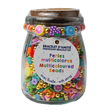 A fun and easy item for beginner designers. Presented in a reusable glass jar with cork stopper, filled with colorful polymer clay beads and ready-to-use string. Ideal for creative workshops, gifts or birthdays.