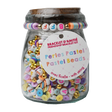 A fun and easy item for beginner designers. Presented in a reusable glass jar with cork stopper, filled with colorful polymer clay beads and ready-to-use string. Ideal for creative workshops, gifts or birthdays.