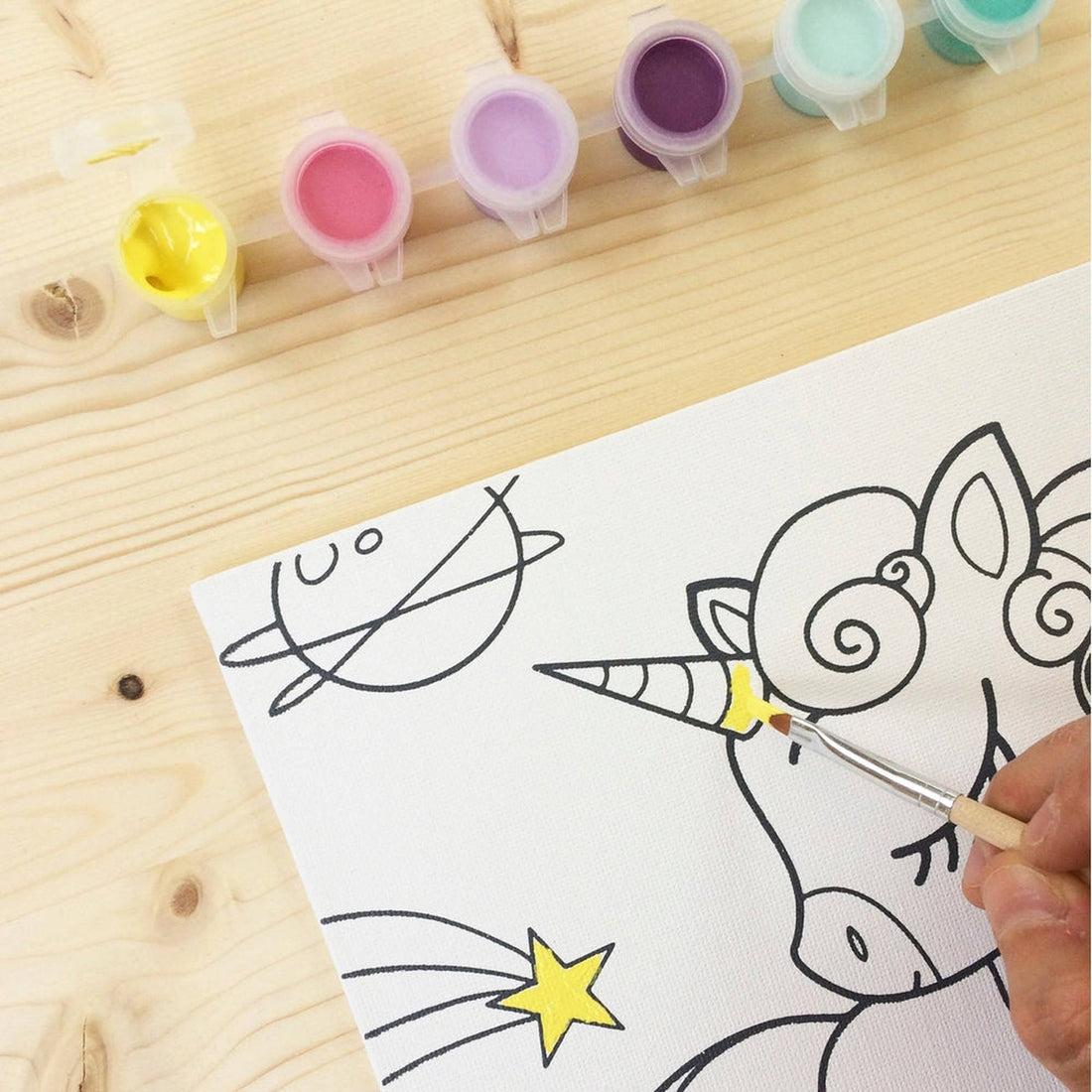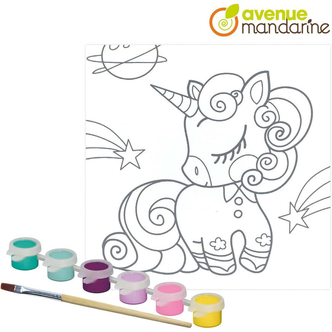 Kit contents: - 1 canvas 20 x 20 cm - 1 palette of 6 paint pots - 1 brush Kit dimensions: 21.5 x 29 cm