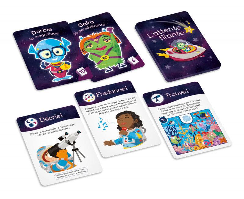L'attente filante 2 is a card game for children aged 5 to 8, in which players have to complete all kinds of playful challenges requiring a variety of skills. The game is designed to turn waiting situations into fun!