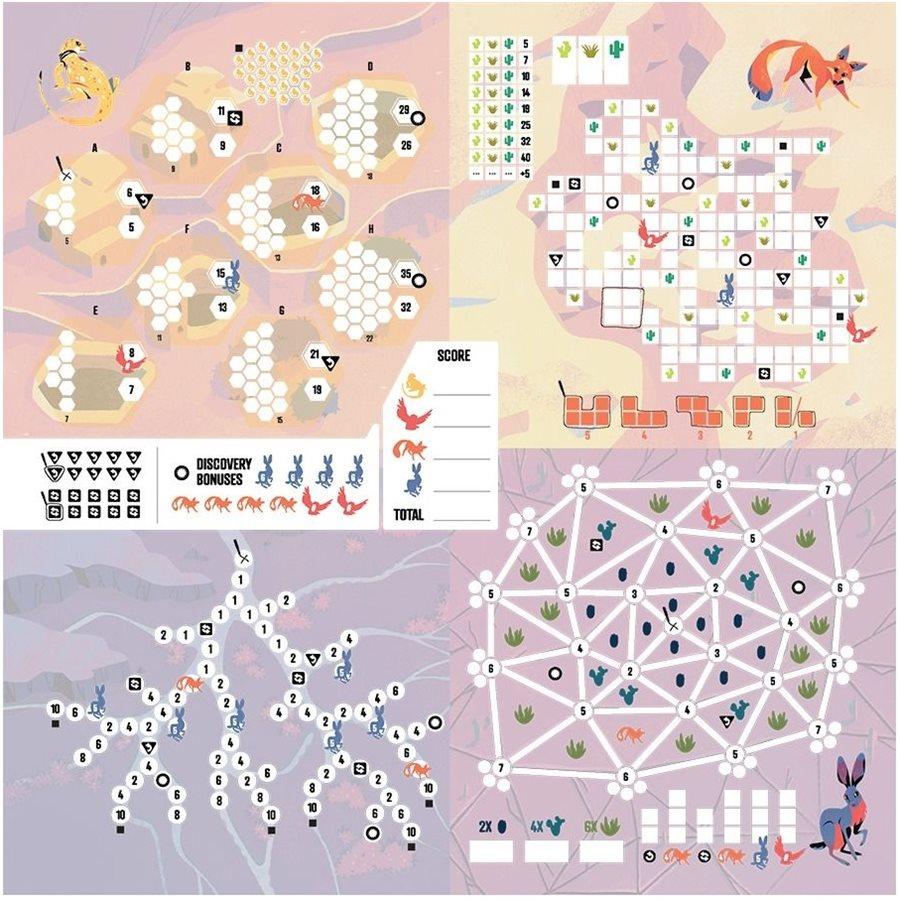Each area features a different unique game, so skillful aim is required to play in the chosen region and score points on your dry-erase score sheet! But beware of other players eager to bump discs to score points for themselves.