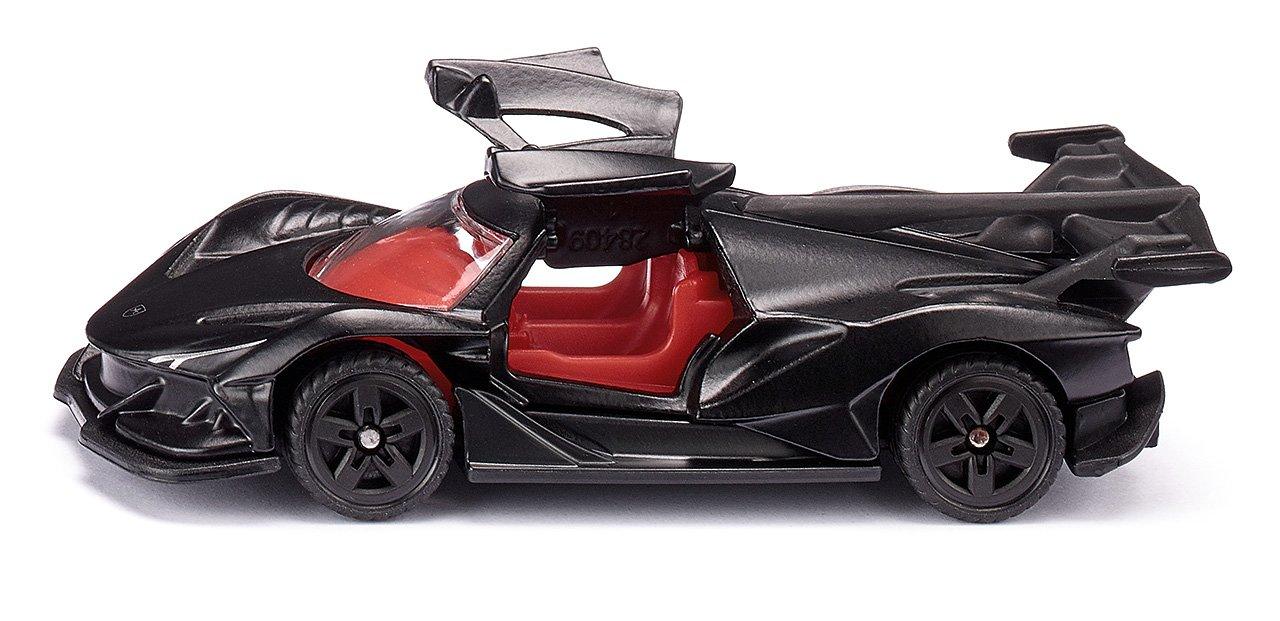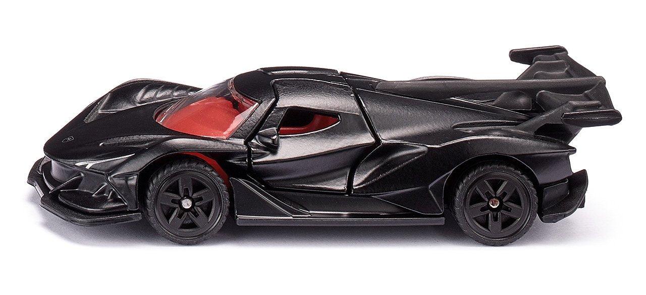Apollo IE: stands for "Intensa Emozione" (intense emotions). A 730 hp V12 engine ensures that the Apollo IE vibrates on start-up and accelerates to 334 km/h. The car is painted matte black, as if from another galaxy: clean contours, gigantic rear spoiler, itself topped by a large dorsal fin. The gullwing doors open wide, allowing curious onlookers to admire the totally red interior of this right-hand drive, even on the miniature.