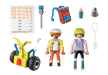 The toy set includes two PLAYMOBIL figures, a balance racer, a backpack, rollerblades, wristwatch and other accessories for imaginative role play. With the various bandage labels, the injured figure can be doctored as desired. The roller skates of the female figure are removable.