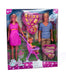 A whole family including 13 pieces: pregnant Steffi (29 cm), Papa Kevin (30 cm) and little Evi (12 cm) in her stroller as well as several accessories.