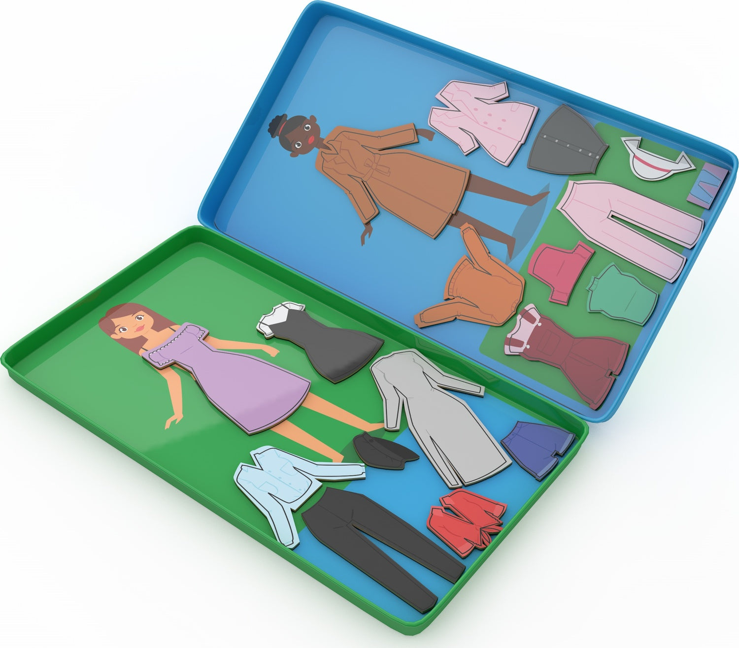 Have fun dressing up these 2 friends with the clothes and magnetic accessories of your choice. Mix and match patterns and colors until you've found the prettiest combination. This game lets you explore creativity anywhere!