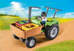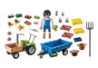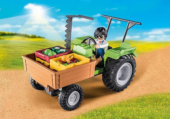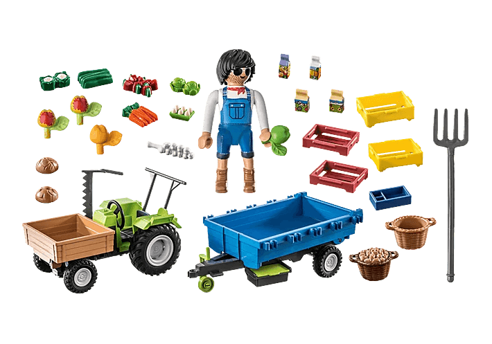 The Playmobil farmer uses his fully-equipped tractor to get the job done. In his tractor, he takes his fresh produce to the farm shop. After growing them for months, he can load all his fruit and vegetables into the front and back of the vehicle for easy transport.