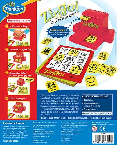Ce jeu innovant encourage les pré-lecteurs et les premiers lecteurs à faire correspondre les images et les mots sur leurs cartes de défi avec les tuiles révélées dans le Zingo ! Appareil Zinger. Le premier joueur avec une carte pleine remporte la partie en criant " Zingo ! Deux niveaux de jeu et plusieurs variantes de jeu maintiennent la folie pendant des heures !