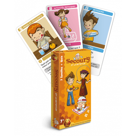 Secoury et la nutrition se joue comme un 7 familles classique, mais pour remporter une carte, il faut également répondre correctement à la question inscrite dessus.