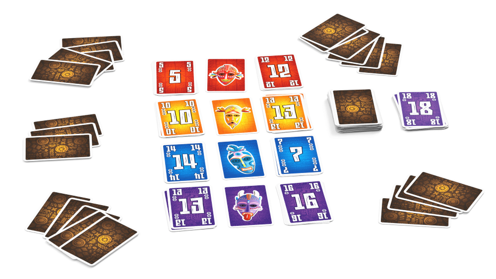 Dans Cabanga ! les joueurs essaient de se débarrasser de leur main de cartes le plus rapidement possible - mais idéalement sans prendre de pénalités en cours de route. Une fois que les cartes de rangée et les cartes de départ des quatre couleurs ont été placées au centre de la table et que les joueurs ont chacun une main de huit cartes, le tour commence.