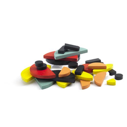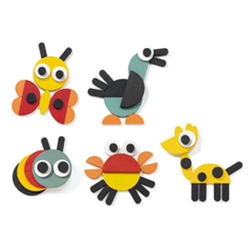 Reconstituer les modèles sur les cartes. L’enfant peut également s’amuser à créer des animaux rigolos. 30 pièces en bois.