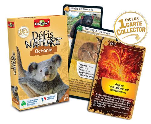 Défis Nature vous emmène à la rencontre des animaux d'Océanie les plus surprenants. Découvrez les espèces à préserver, puis pariez sur les points forts de vos animaux pour collecter toutes les cartes du jeu et remporter la partie. Alors, prêts à relever le défi ?