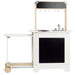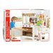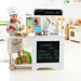 Cette cuisine en bois adaptée à la taille de l'enfant comporte des étagères et un comptoir amovible.