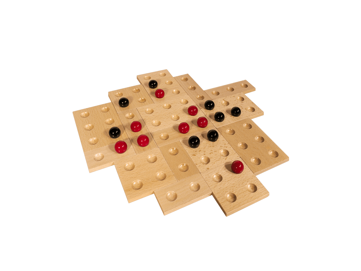Kulami est un jeu simple et élégant pour 2 joueurs. Assemblez les tuiles en bois pour créer un plateau différent à chaque partie. Les joueurs, à leur tour, placent une bille pour tenter de contrôler chacune des tuiles.