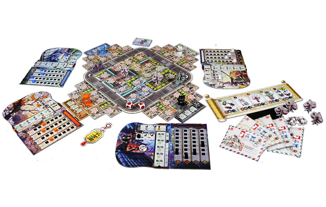 À chaque tour, les joueurs auront l'occasion de découvrir quelque chose de nouveau dans la ville en révélant divers éléments. Apparaitront alors des petites créatures, des insectes, des objets spécifiques, des animaux (plus ou moins gentils !) et des habitants de Kyoto, qui tous viendront insuffler de la vie dans le quartier que sillonnent leurs chats. Tout au long de la partie, chaque joueur évoluera et développera ses compétences, comme par exemple l'agilité qui permettra d'explorer de nouvelles parties de la carte en grimpant sur les buissons et les toits.