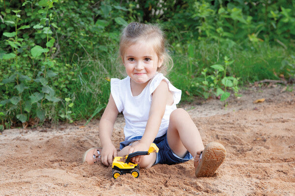 Pelle Lena Workies en plastique ABS, avec essieux en acier galvanisé et pneus caoutchoutés de haute qualité, pour que votre enfant soit un fier conducteur de pelle d’une manière ludique.
