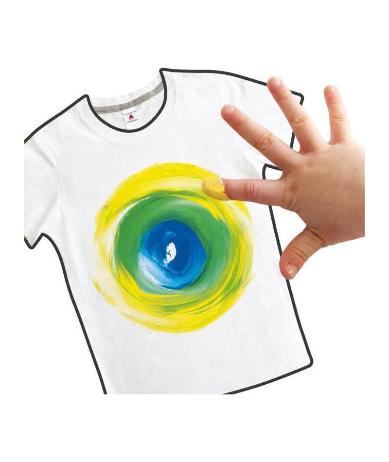 Gouache aux doigts pour textile, prête a l'usage, en pot de 6 couleurs dans une mallette réutilisable. Adaptée au contact avec la peau, destinée aux enfants des le plus jeune âge et spécialement conçue pour être appliquée avec les doigts sur textiles.