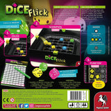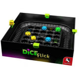 Well-flicked est à moitié gagné dans Dice Flick : Dans le jeu, 2 à 4 joueurs s'affrontent pour marquer 50 points en premier. Pour ce faire, ils tirent des dés d'un sac à chaque tour et en lancent deux sur l'aire de jeu, qui est montée à l'intérieur de la boîte de jeu. Les dés adjacents et les dés atterrissant au milieu de l'aire de jeu marquent des points et sont remis dans le sac. Alors que les dés blancs servent de jokers, les dés rouges déclenchent un score spécial. Les joueurs qui utilisent au mieux les capacités du dé et qui ont un bon objectif sont voués à gagner.
