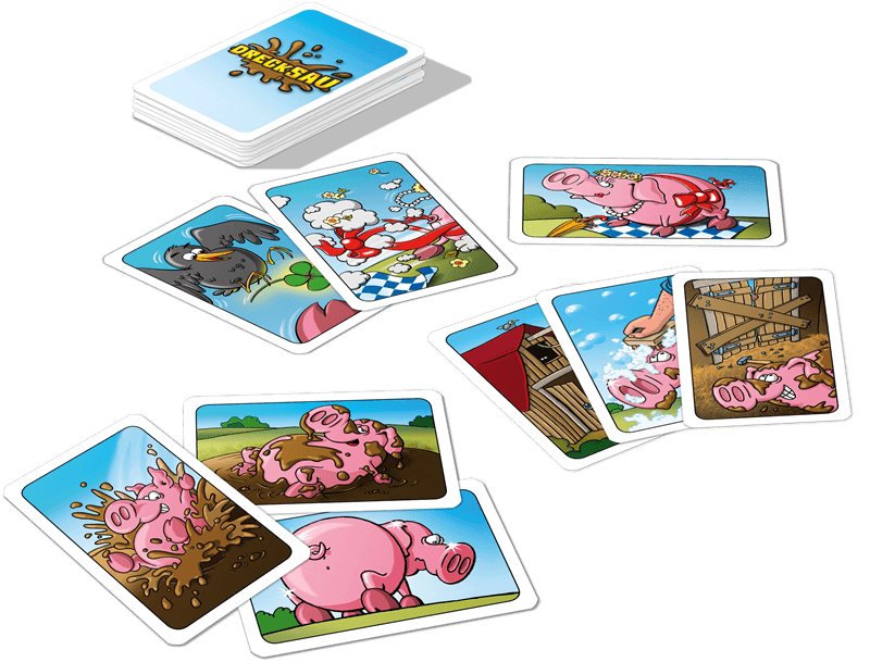 Une queue en tire-bouchon, un groin trop mignon, et… PLOUTCH ! Dans la boue, un plongeon ! La boue, c’est ce que les cochons préfèrent. Rendez-les heureux et soyez le premier à salir tous vos cochons ! Pour réussir, vous allez devoir nettoyer les cochons des autres, mais aussi protéger vos cochons sales de la pluie grâce aux porcheries. Les cochons les plus malins iront jusqu’à barricader leur porcherie pour éviter que le fermier ne vienne les décrasser !