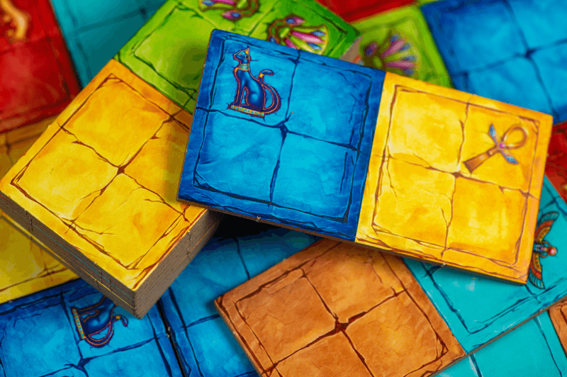 Pendant son tour, l’architecte doit choisir et placer un Domino sur sa pyramide puis, si possible, marquer le Domino en y plaçant un marqueur Bijou. Une fois l’étage complété, il sera évalué et des points de prestige seront attribués.