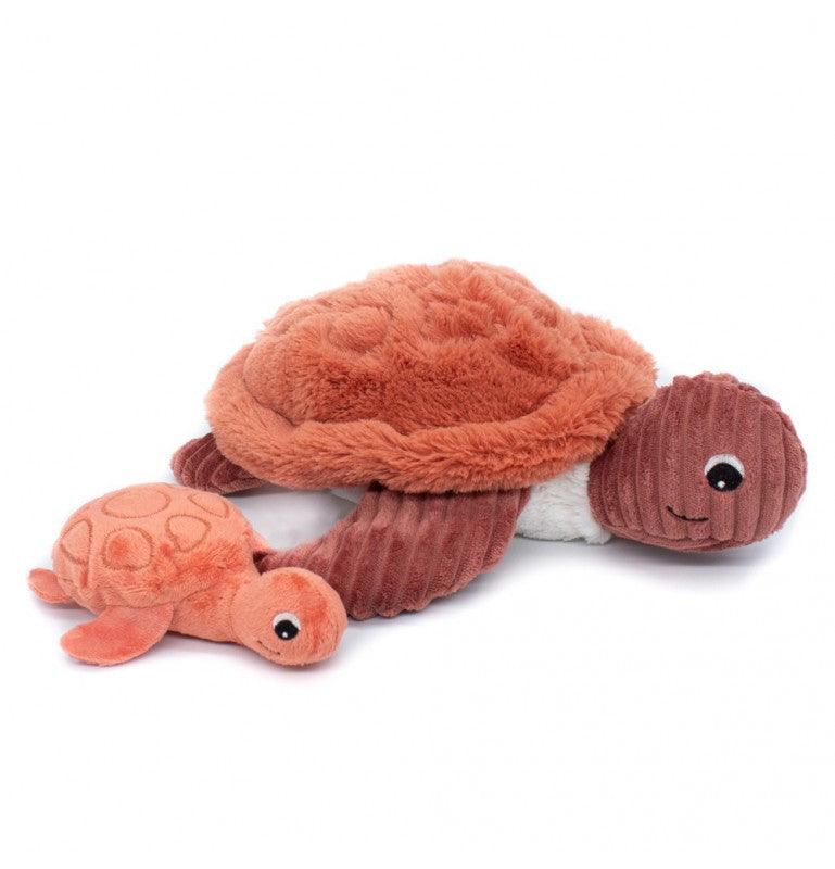 Voici la maman et le bébé tortues SAUVENOU pour une double ration de tendresse. Embarque-les partout avec toi pour leur faire vivre plein d'aventures.