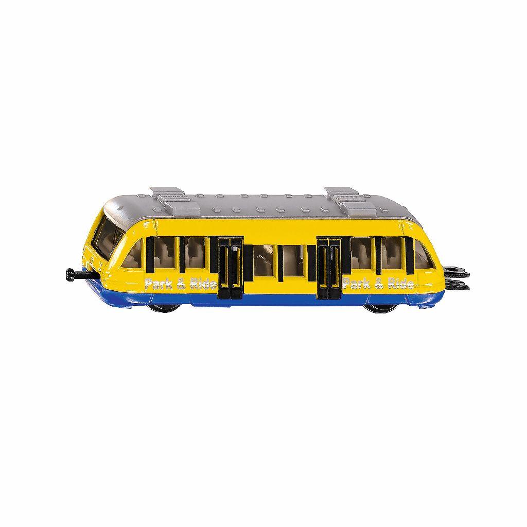 Modèle de train de banlieue en métal et à petite échelle. Roues tournant facilement et lignes épurées. Les attelages ferroviaires SIKU standards à l'avant et à l'arrière permettent d'atteler d'autres modèles de train de banlieue.