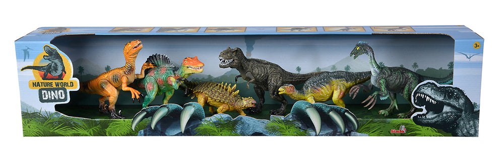 Découvrez cet ensemble de 6 dinosaures avec des parties mobiles mesurant entre 21 et 25 cm.