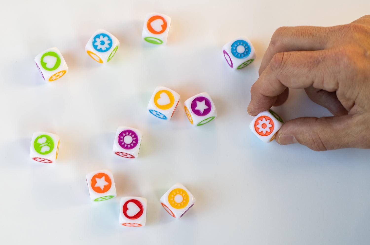 12 dés sur lesquels se retrouvent 6 symboles de 6 couleurs différentes sont divisés également entre les joueurs. Les dés sont ensuite lancés en même temps par tous les joueurs.