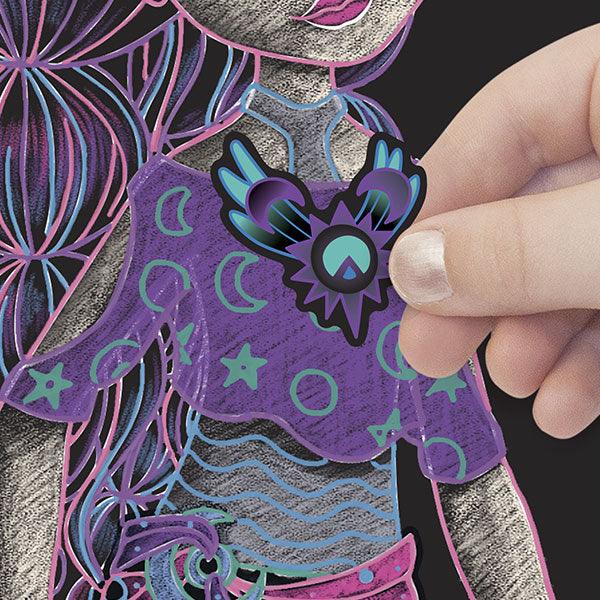 Les étoiles ne brillent que dans le noir! Imagine la meilleure expérience de mode créative qui soit avec un effet néon non éclairé sur un papier de couleur noir-ébène! Découvre Eclipsia et son style étoilé grâce à un éventail d’activités créatives.
